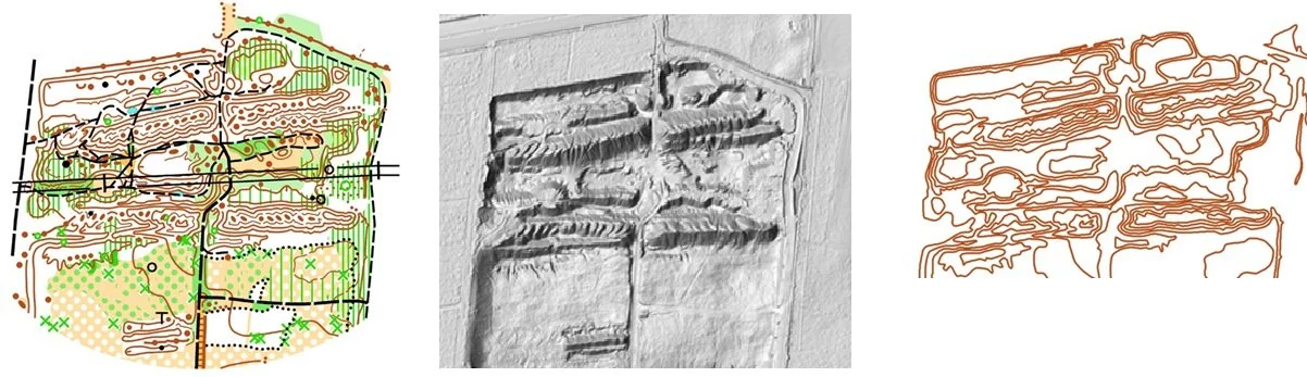 Aangezien de laatste versie van het Digitaal HoogteModel (DHM) dateerde van 2013, toen de groeve nog in volle ontginning was, diende het reliëf in de 60 hectare grote groeve, op de ouderwetse handmatige manier ingetekend. Daarenboven kon er geen verbinding gemaakt worden met voldoende satellieten in de kleine groeve omdat die gekenmerkt wordt diepe steilranden en storthopen waarop volwassen dennen gegroeid zijn. Ook daar diende dus handmatig getekend te worden.